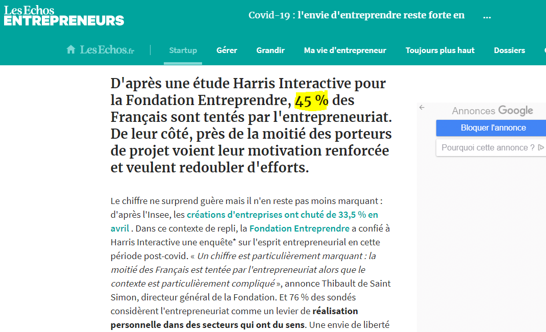 Une étude de Harris Interactive montre que malgré la Covid-19, les Français ont toujours autant envie d’entreprendre.